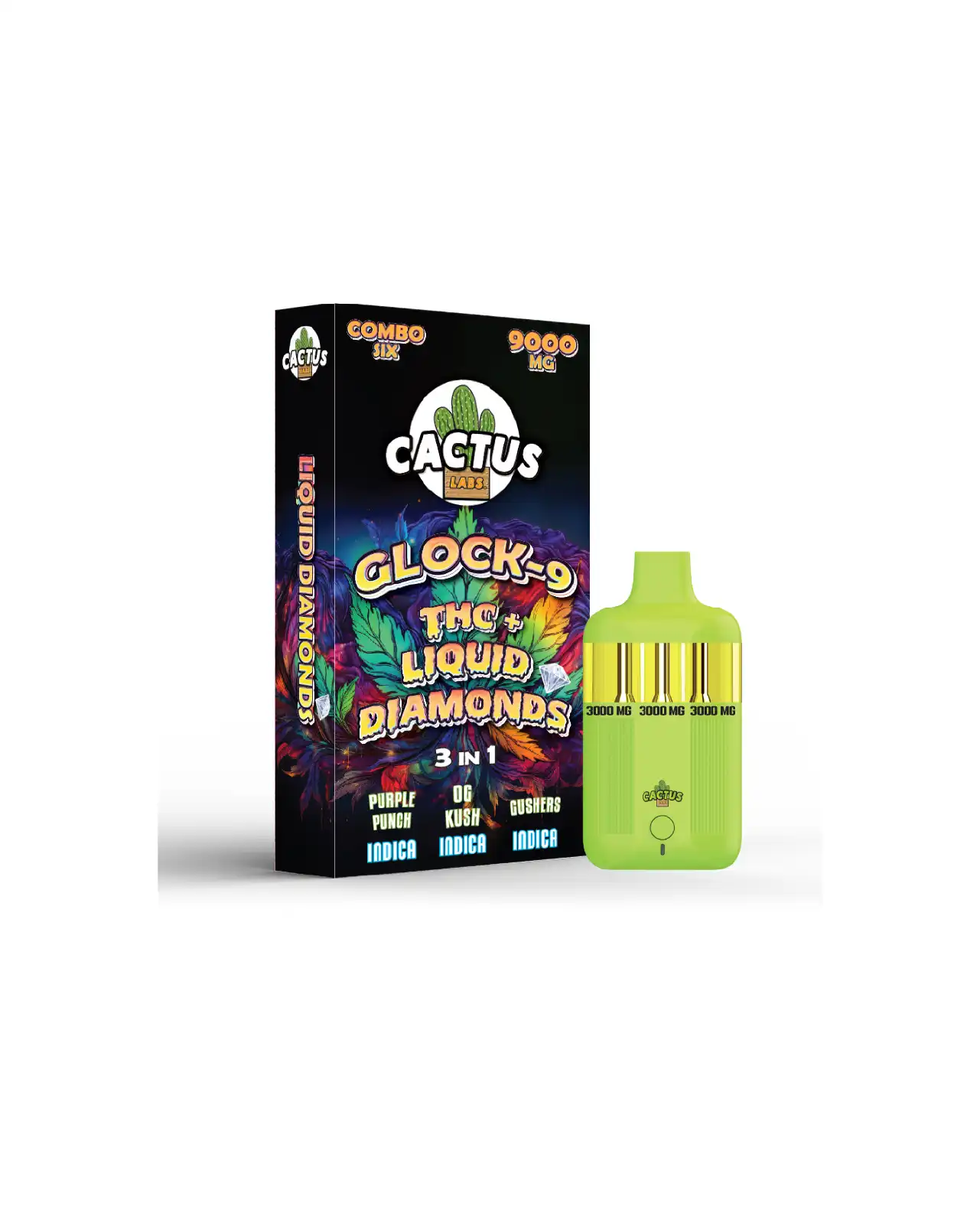 GLOCK-9 THC+ LIQUID DIAMONDS PURPLE PUNCH + OG KUSH + GUSHERS (INDICA + INDICA + INDICA) (COMBO ONE 9000 MG)