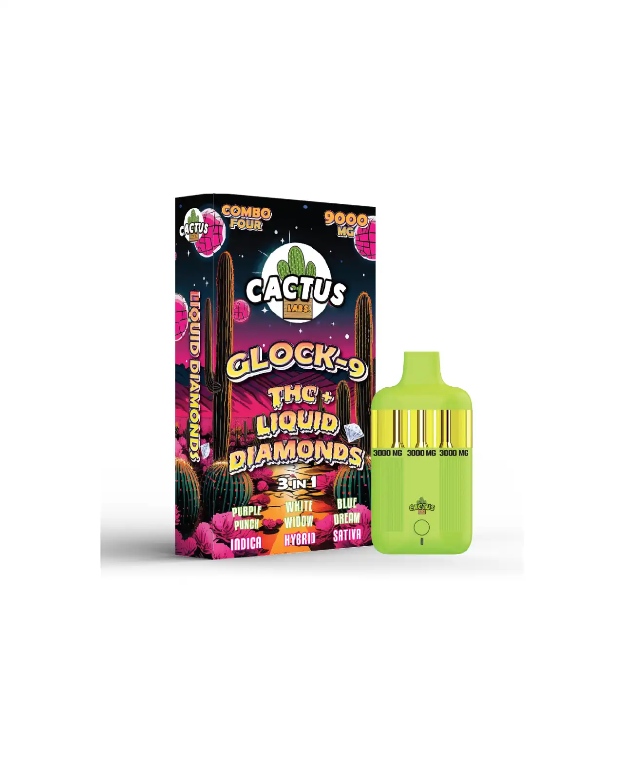 GLOCK-9 THC+ LIQUID DIAMONDS PURPLE PUNCH + WHITE WIDOW + BLUE DREAM (INDICA + HYBRID + SATIVA) (COMBO ONE 9000 MG)