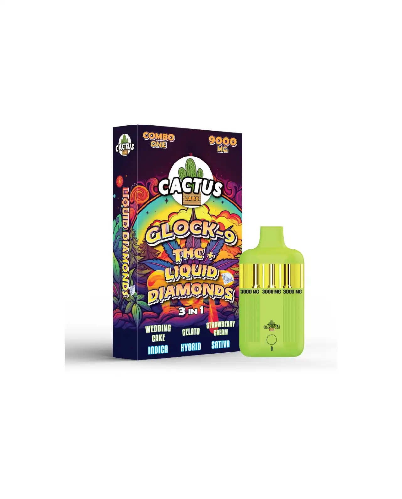 GLOCK-9 THC+ LIQUID DIAMONDS WEDDING CAKE + GELATO + STRAWBERY CREAM (INDICA + HYBRID + SATIVA) (COMBO ONE 9000 MG)
