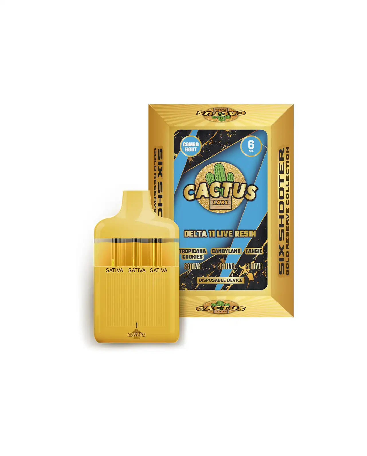 Be the first to review “Six Shooter Delta 11 Live Resin Tropicana Cookies + CandyLand + Tangie (Sativa + Sativa + Sativa) Gold Reserve 6ML Disposable” Cancel reply