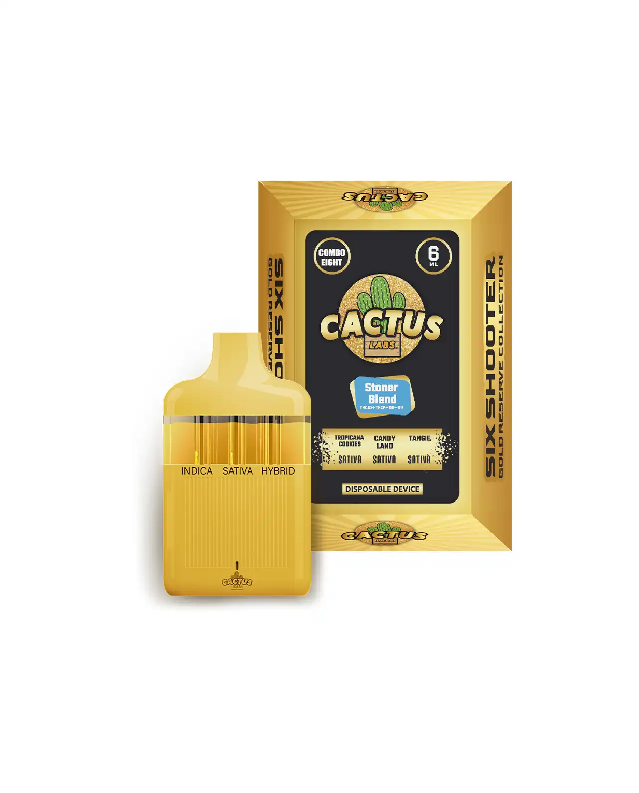 SIX SHOOTER STONER BLEND GOLD RESERVE TROPICANA COOKIES + CANDY LAND + TANGIE (SATIVA + SATIVA + SATIVA) 6ML DISPOSABLE